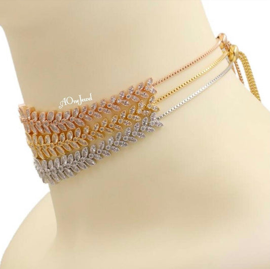 Cubic Zirconia Gold Plated Adjustable Choker Necklace