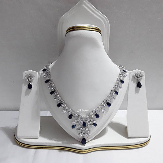 Indian Bridal CZ Diamond Silver Sapphir Necklace Set