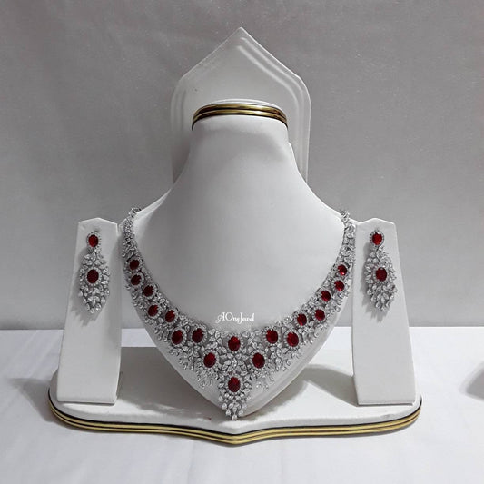 Indian Bridal CZ Diamond 4PCS Red Necklace Set