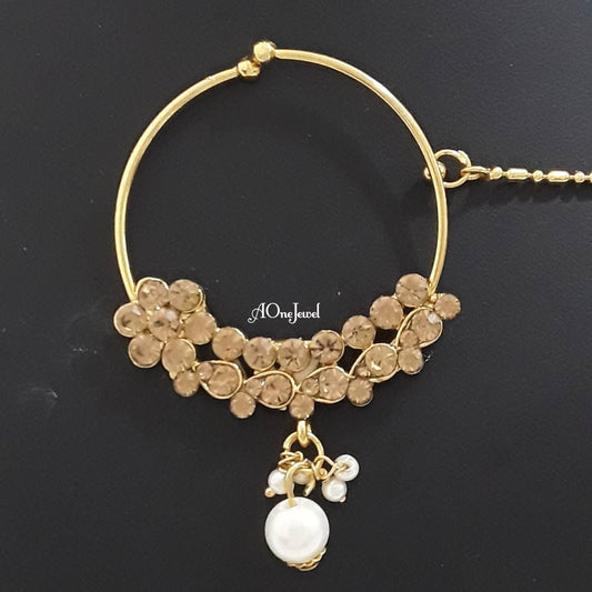 Indian Bollywood Style Gold Pearl Nath, Traditional Nose Ring, Pierce Nose Ring, Nose Ring Chain, Nathni Jewelry, Wedding Jewelry,Nose Hoops