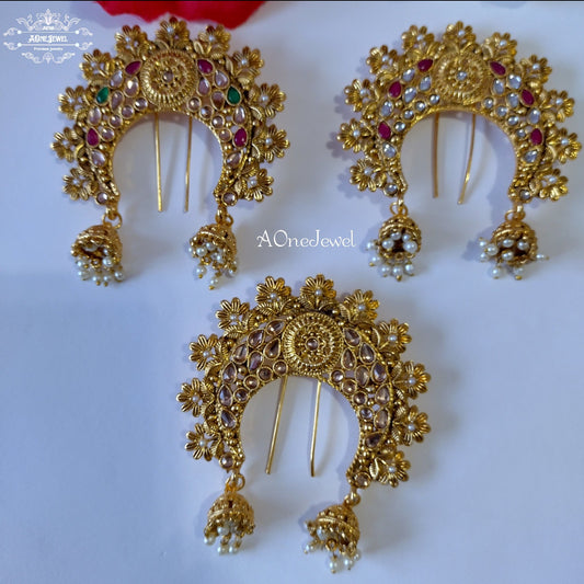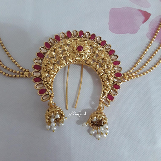 Indian Bollywood Bridal Gold Plated Kundan Head Piece Jewelry, Jhoomer, Passa, Indian Jewelry, Wedding Hair Accessories, Hair Jewelry