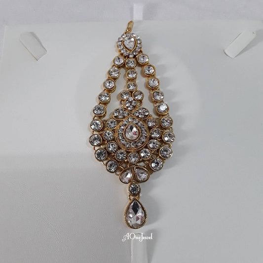 Indian 22K Gold Plated American Diamond head piece Tikka | Silver Tikka | Gold mang tikka | pakistani designer jewellery | bridal jewellery