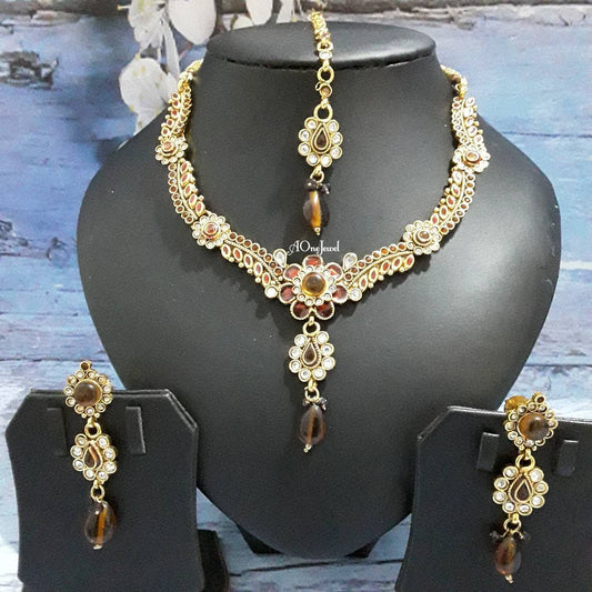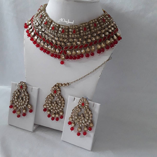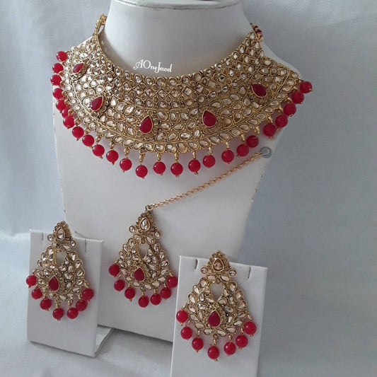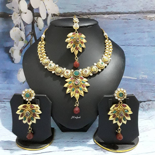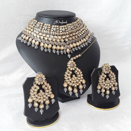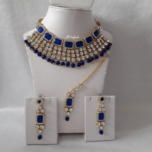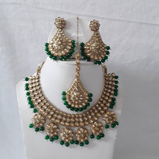 Indian Ethnic Kundan Necklace Set With Tikka,Statement Necklace Set, Wedding Jewellery Set, Pakistani Jewelry, Gold Jewelry Set, Bridal Set
