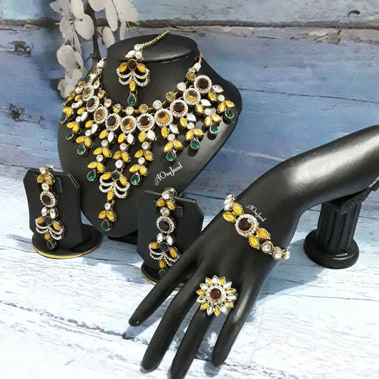 Indian Ethnic Kundan Gold Plated Necklace Earrings Tikka Bracelet Ring Set, Statement Necklace Set, Wedding Jewelry Set, Bridal Jewelry Set