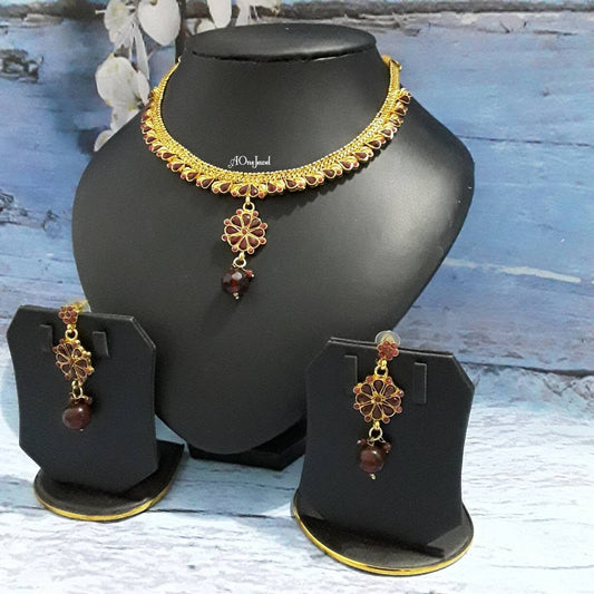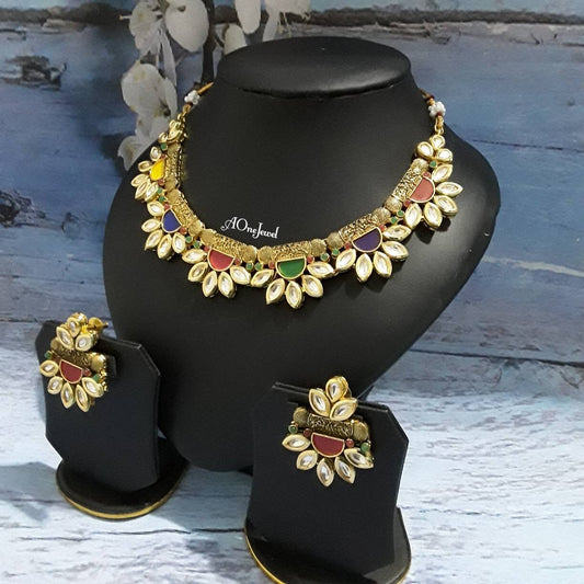 Indian Ethnic Enamel Work Antique Gold Plated Necklace Earrings Set, Necklace Set, Wedding Jewelry Set,Traditional Jewelry,Pakistani Jewelry