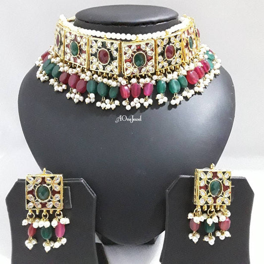 Indian Ethnic Kundan Pearl Gold Plated Choker Necklace Earrings Set, Pearl Necklace Set, Wedding Bridal Jewelry Set, Pakistani Jewellery