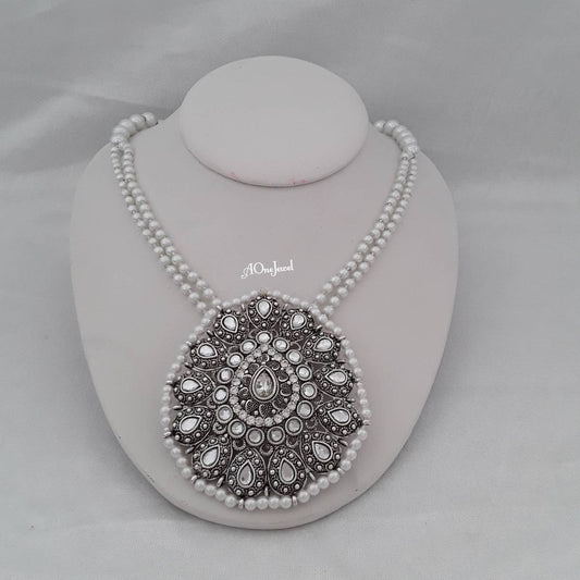 Indian Ethnic Kundan Pearl Necklace, Antique Silver Plated Necklace Wedding Jewellery, Pakistani Jewellery, Sabysachi Jewellery,