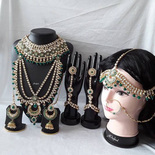 Indian Ethnic Raani Haar Necklace Earrings Set, Wedding Jewelry Set, Bridal Jewelry, Kundan Jewelry Set, Long Necklace Set,Pakistani Jewelry